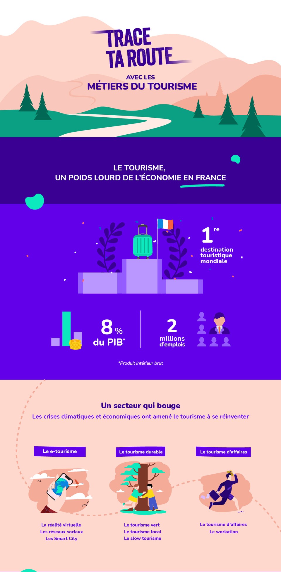 Entre le tourisme et la France, c’est une histoire qui dure ! De la conception de voyage à l’hôtellerie-restauration, le tourisme recouvre de nombreuses activités et se transforme : des nouveaux enjeux, usages et modes de vacances viennent redessiner ce secteur multi-facette. Suivez le guide !